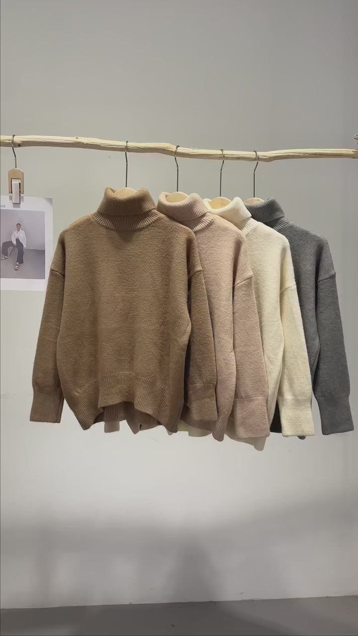 Découvrez l'élégance et le confort ultime avec notre pull col roulé en cachemire pur, conçu pour la femme moderne. Sa silhouette large et son tissu épais en cachemire en font une pièce parfaite pour l'hiver, offrant à la fois chaleur et style. Disponible dans des tons neutres sophistiqués pour compléter toutes les tenues.